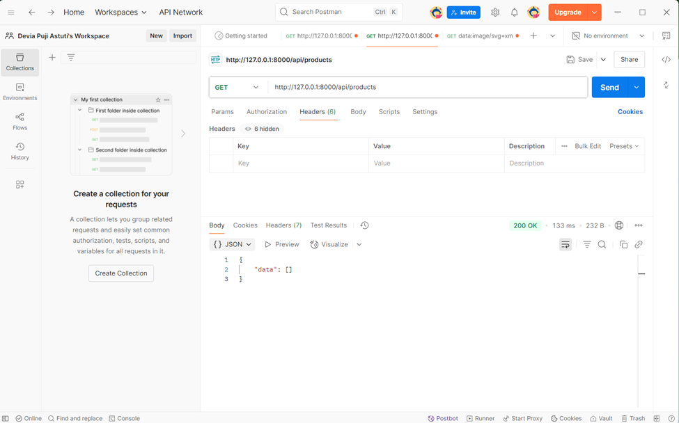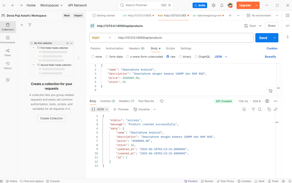 Jika berhasil, maka tampilan Postman akan seperti berikut: