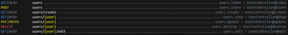 Sehingga jika dilihat pemetaan route php artisan route:list menjadi seperti gambar di bawah ini.