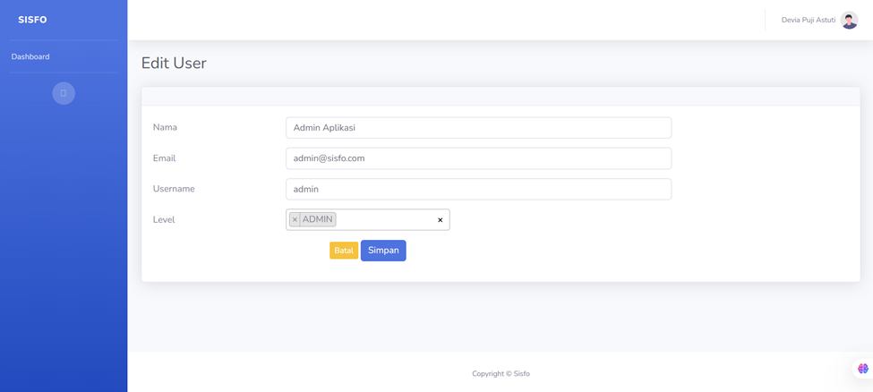 Selanjutnya kita akan mencoba melakukan perubahan data user.