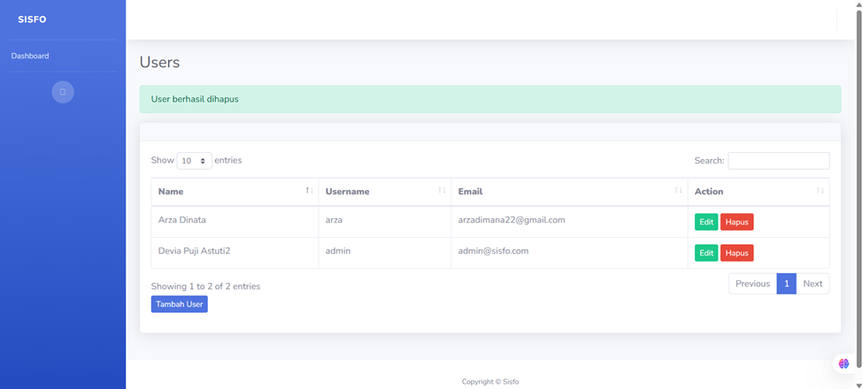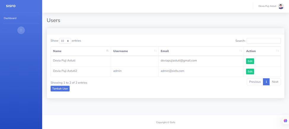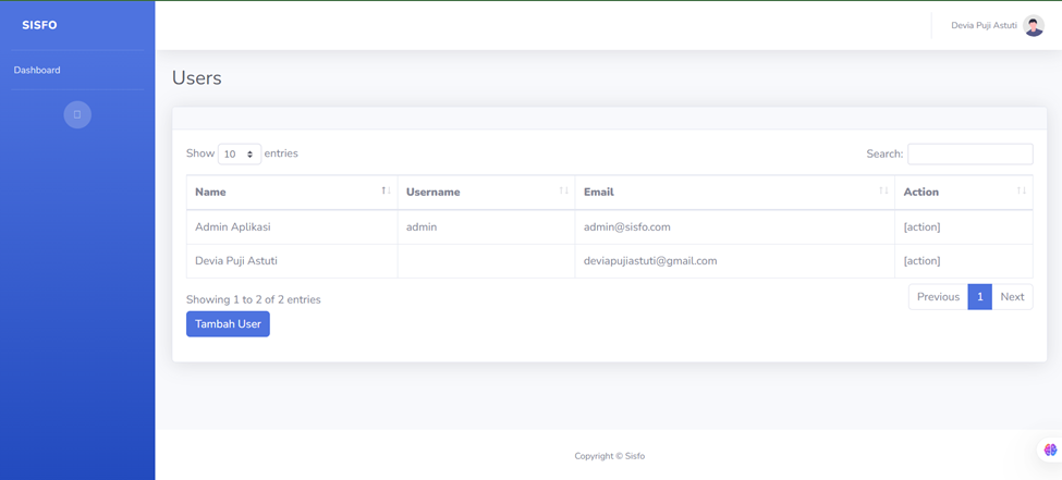 Sehingga tampilan list user menjadi seperti gambar dibawah ini.