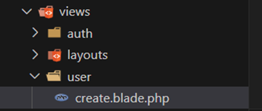 selanjutnya buat folder user didalam folder view, kemudian tambahkan file create.blade.php