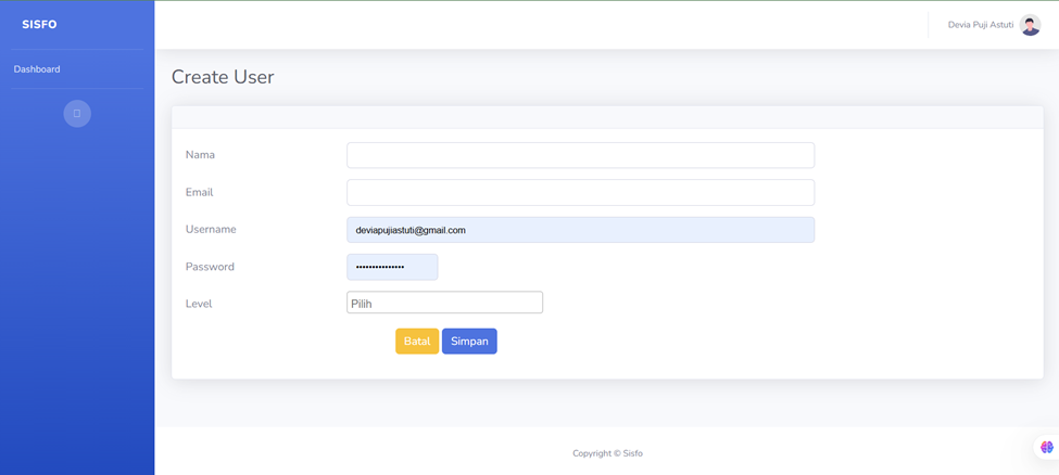 Sehingga tampilan form inputan user menjadi seperti gambar dibawah ini.