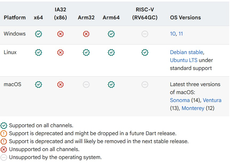 Sebelum install SDK Dart pastikan arsitektur hardware telah memenuhi persyaratanminimum, Adapun persyaratan minimum yang dibutuhkan untuk install SDK Dart seperti gambar berikut:
