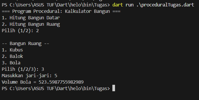 print("Volume Bola = ${ruang.volumeBola(r)}");