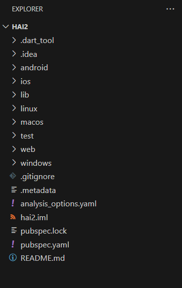 Buat project bernama hai dengan cara membuka command pallete dengan shortcut ctrl+shift+p lalu ketik Flutter: New Project > Application
